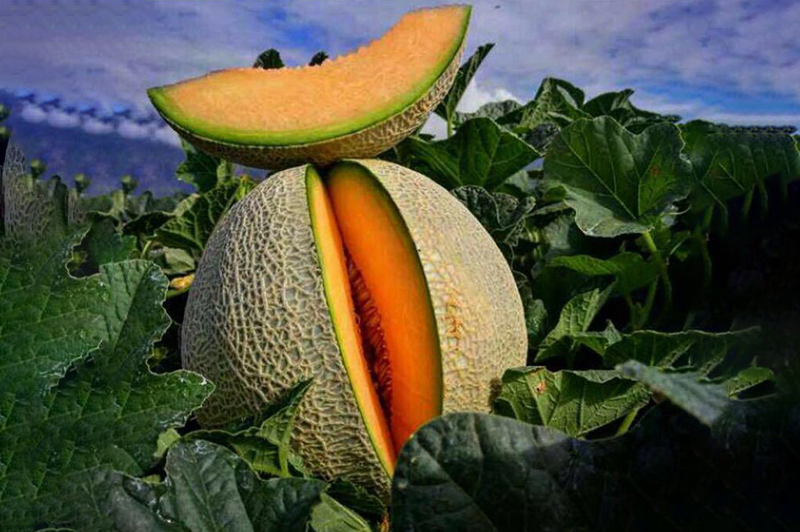 Elongated with a golden, netted rind and crisp, floral orange flesh. Sweet with a spicy hint, rich in vitamins A and C. Versatile for cocktails or fresh slices.
