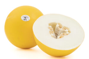 Oval with a green-striped rind, honey-sweet ivory flesh with pear notes. Silky and floral, high in vitamins C and A. Versatile for salads or chilled soups.